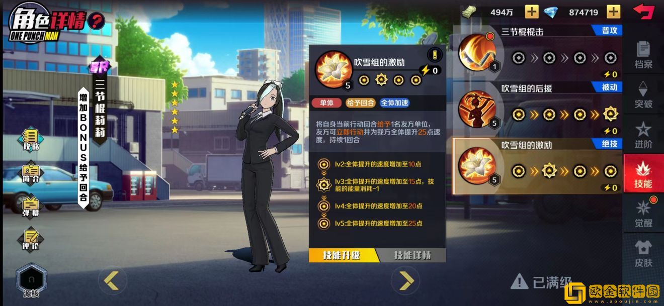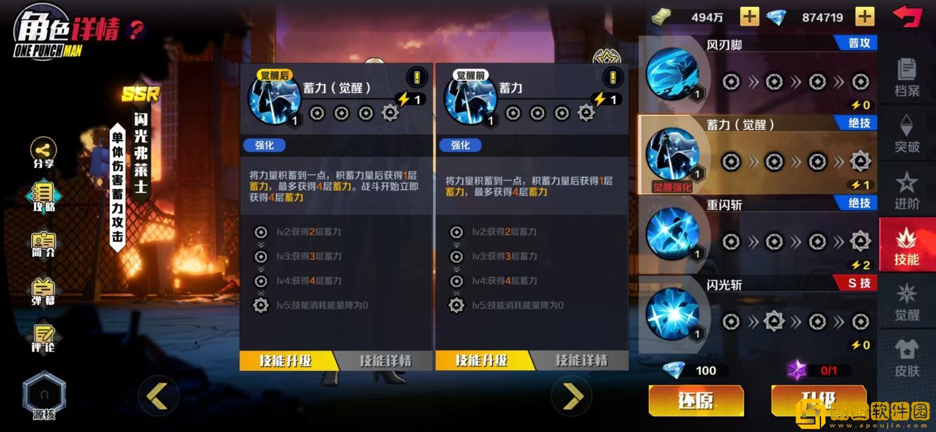 绝技·蓄力:获得1/2/3/4层蓄力,技能5级后,耗能从1降为0。觉醒7阶后,弗莱士开局就能获得满层的4层蓄力。