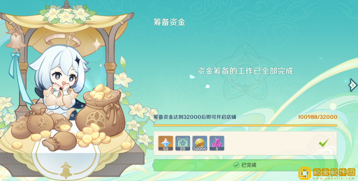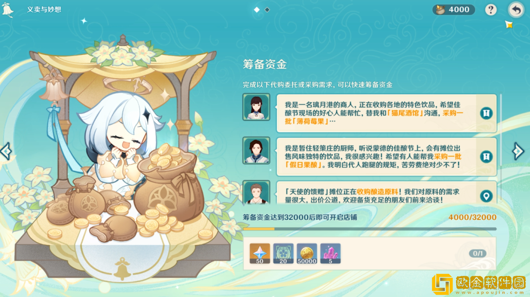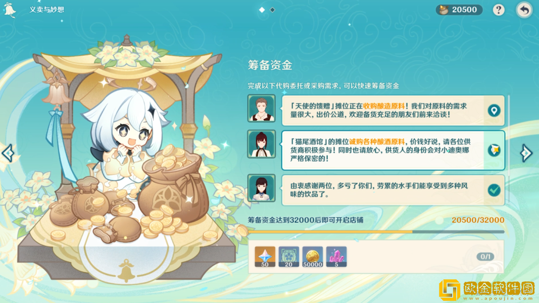 4、材料不够的话就去大世界采集,卖到任务要求的32000即可,最好全卖了。