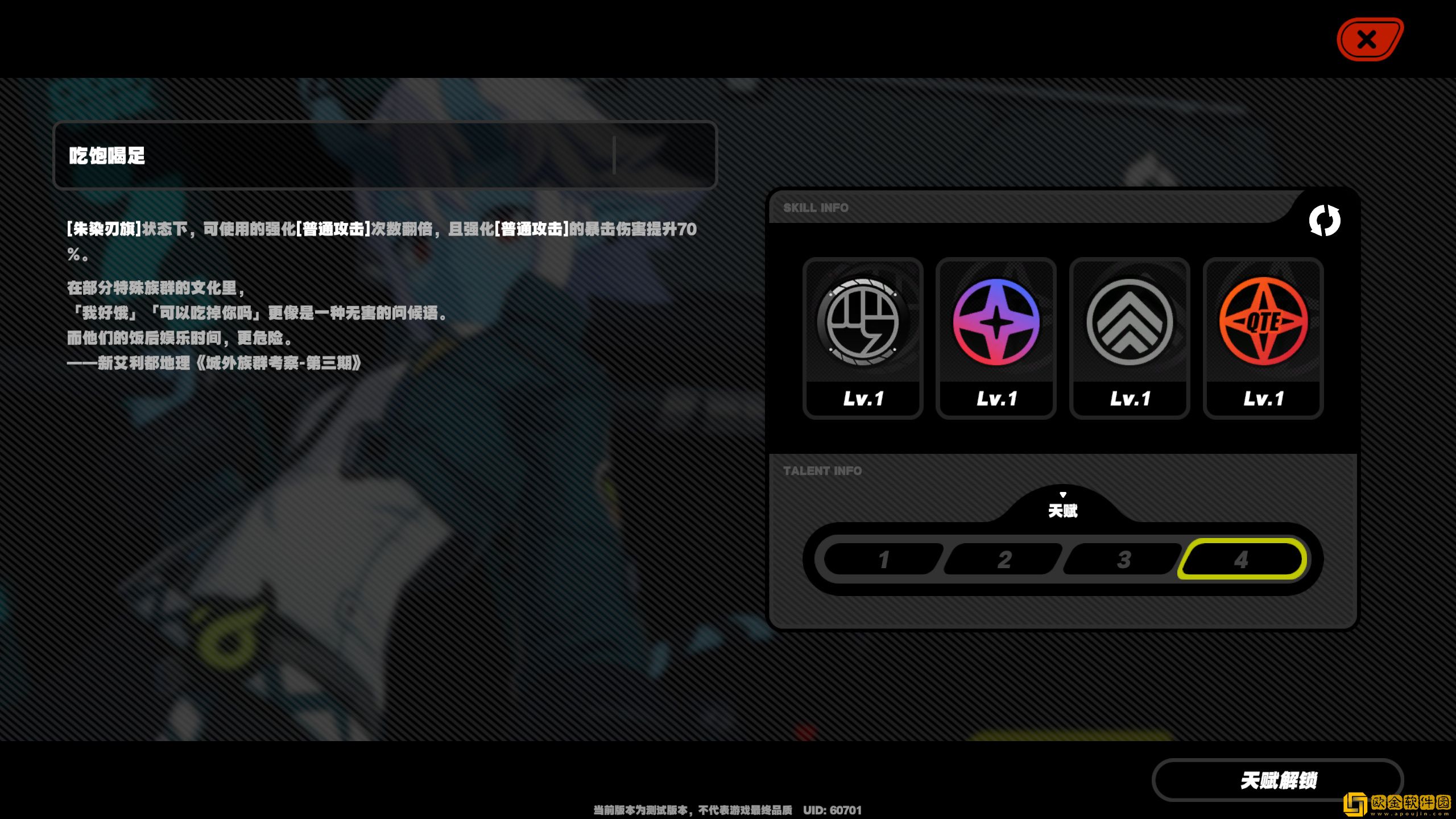 招式发动时,苍角会进入[鬼面]状态,使下一次[朱染刃旗]状态中,强化[普通攻击]的景击率额外提升30%;