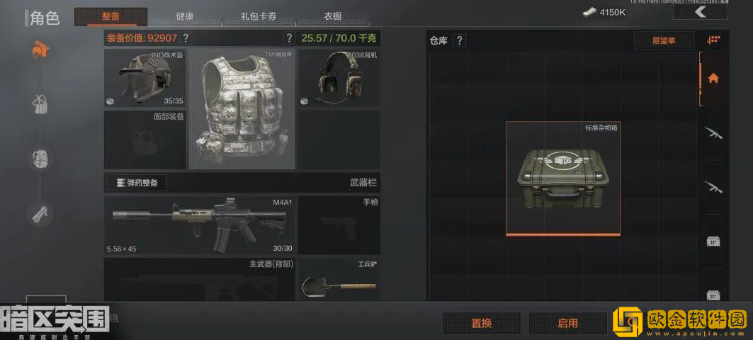 防具箱:可收纳头盔、防弹衣、面罩,但不可收纳防毒面具和有甲弹挂;