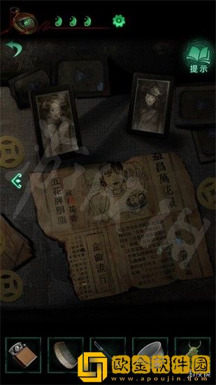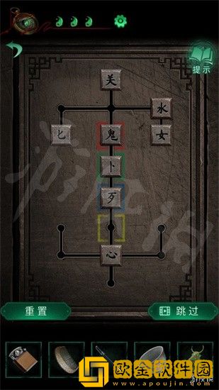 右侧的解谜,需要查看桌子右侧报纸:红色-鬼,绿色-卜,蓝色-歹,黄色-心;