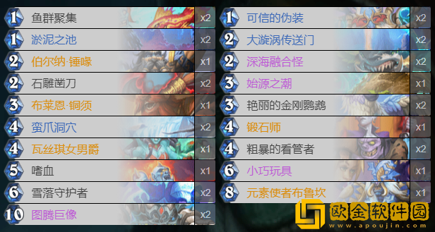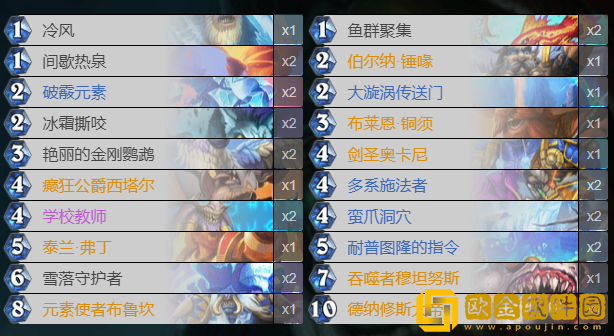 季后赛8名选手7名都带了这套* ,我试了一下果然很香,我从1800名打到了200多名,印象里就输了一个超凡德。这卡组绝对是有T1强度的。