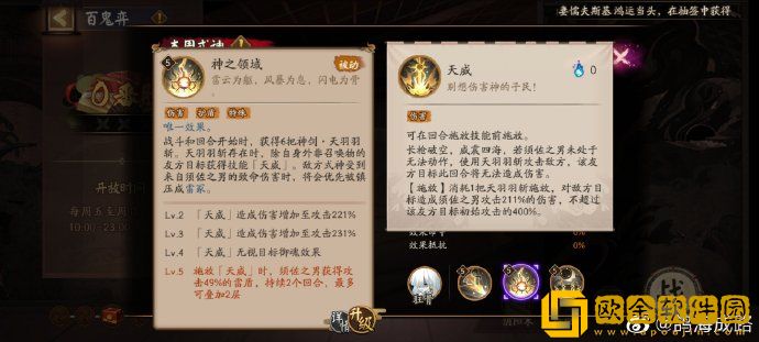 有六次在队友回合打出0火单体伤害的天威,天威无视御魂,同时为须佐之男开盾。