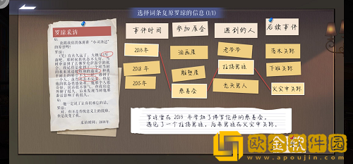 4、当玩家都达成了S级结局和B级结局之后,就可以选择回溯时间线来进行隐藏结局的探索了。隐藏线的结局需要先走1-3再走1-2,在最后一关【罗琼工作室】中,不选择威慑能力的卡* ,选择谈判能力的卡* ,改变关键人物【简桓】的状态,收集所有线索,从而得到隐藏结局的关键线索。
