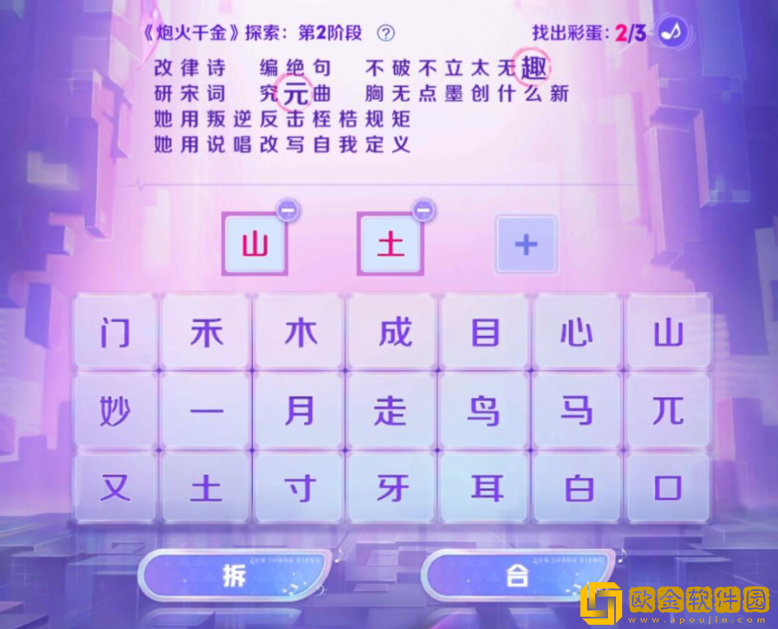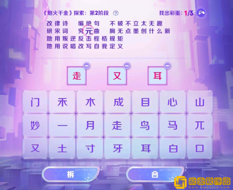 王者荣耀孙尚香新皮肤音你闪耀今天正式上线了,同时也推出了炮火千金探索活动。在活动里需要玩家们找到* 蛋并且组合汉字,那么王者荣耀炮火千金探索第二阶段怎么过呢?现在就和小编一起来看看相关的内容吧。
