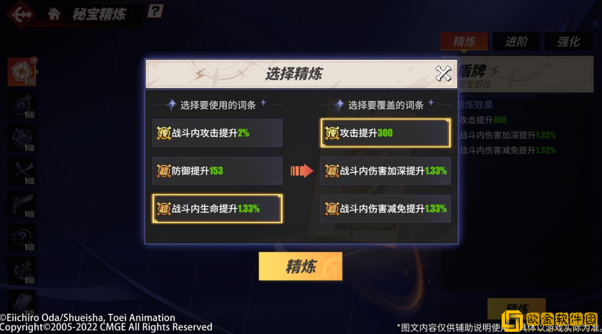 -秘宝部位可承载的精炼效果数量有限;可以用新效果覆盖已有的精炼效果。