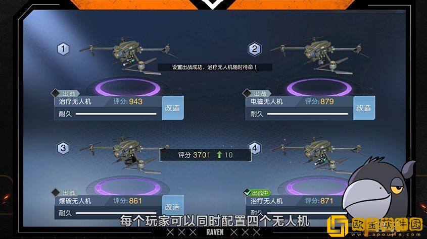 每位幸存者可以同时配置四台无人机,但一次只能出战一台。