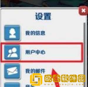 2、接着页面会出现设置的功能弹框,这里我们直接点击第二个用户中心;