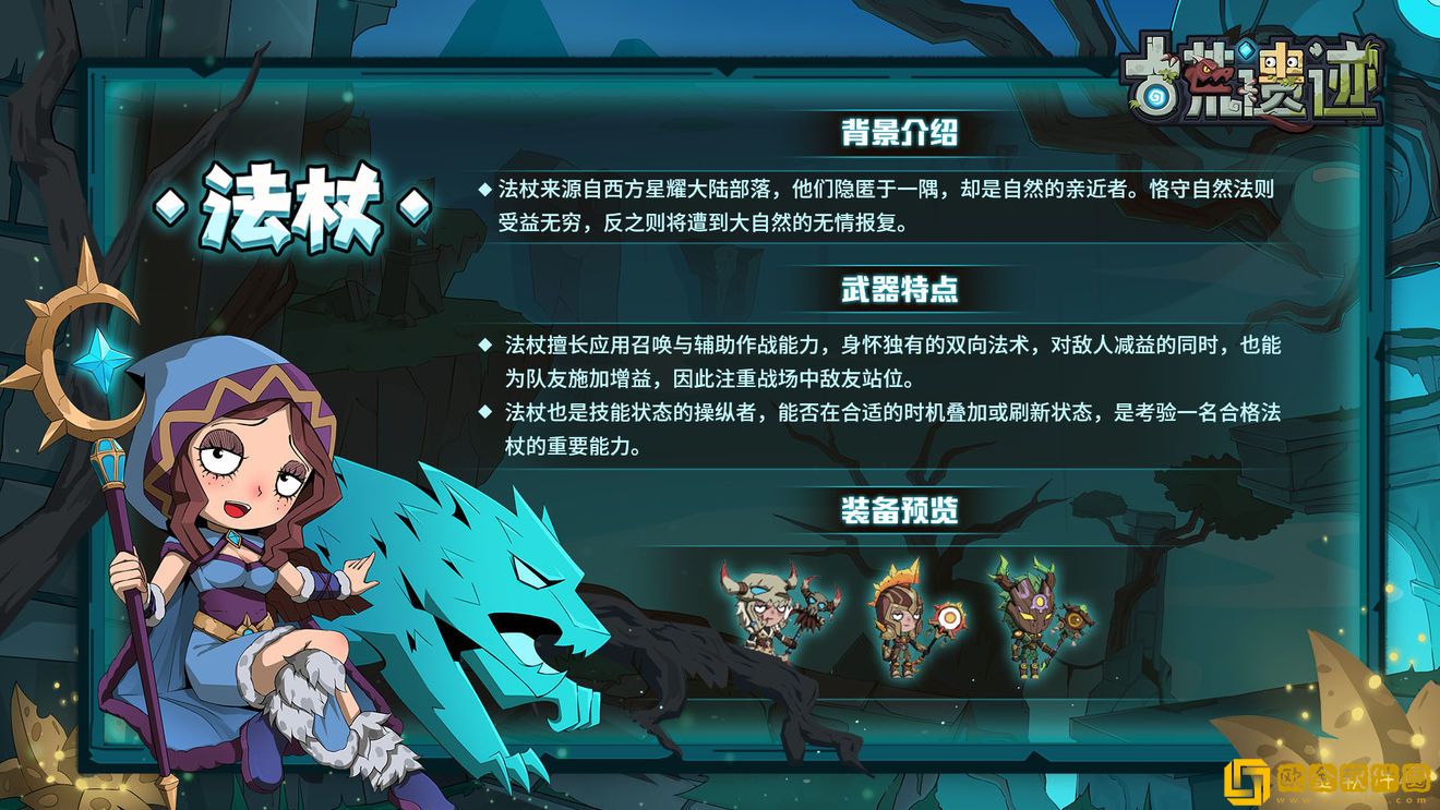 法杖作为远程输出,进攻能力较强,攻击范围广大,但生存能力较低,以技能来进行输出,需要良好的输出环境。