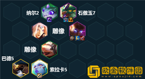 3-5拉七,有杰斯直接带装备上场,和豹女开2换形有输出有坦度,没有就上任意高质量单卡稳定连胜。石傲玉、赛芬、呲呲、法师羁绊蛙妃都可以用来过渡,质量稳定后尽快上八。选秀有索拉卡、巴德都直接无脑拿。