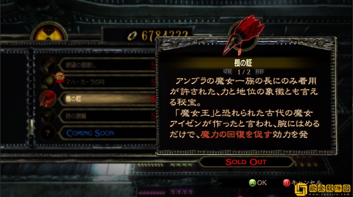 在《猎天使魔女1》中,玩家可以在罗丹的商店中购买各种饰品来增强战斗力。长者之证即为其中一种饰品。