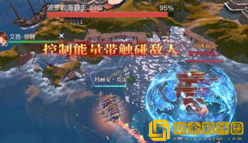 拥有能量链的两名玩家要进行配合,开启船只** 用连线去触碰BOSS,就可以将BOSS的护盾击破。