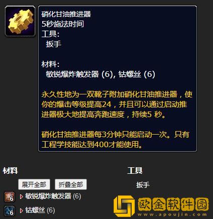 魔兽世界怀旧服WLK硝化甘油推进器工程等级