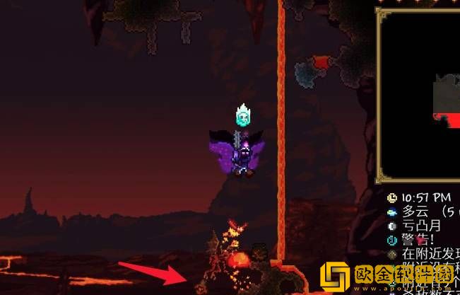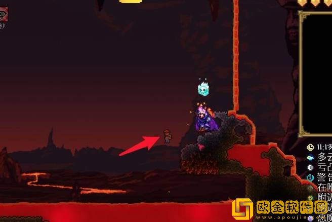 1、进入泰拉瑞亚世界,前往地底最深处地狱。
