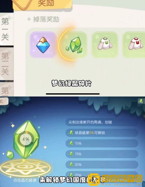 4、通过梦幻绿晶碎片解锁梦幻国度的故事。