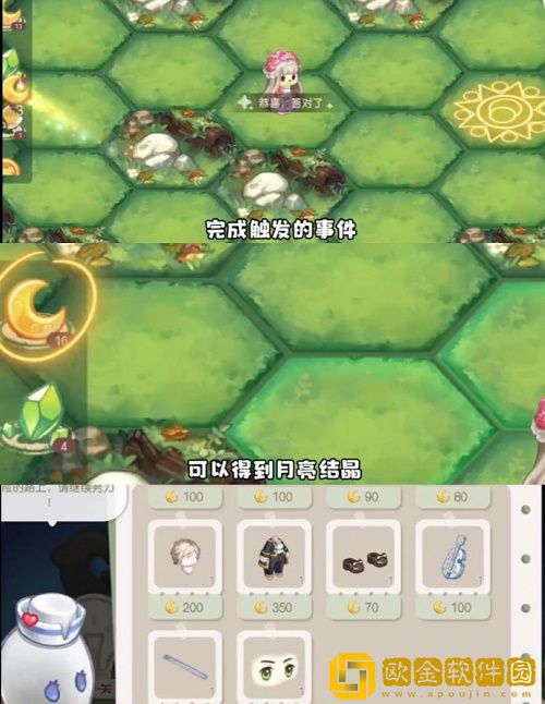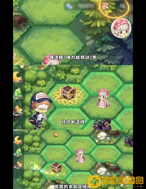 5、进入探险!每消耗1体力能移动1步,终点是魔法阵上有一个宝箱有多余的步数可以去探索周边的区域,获取更多月亮结晶(可兑换时装)。