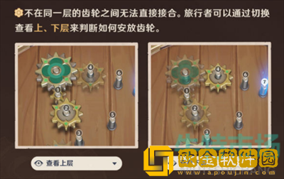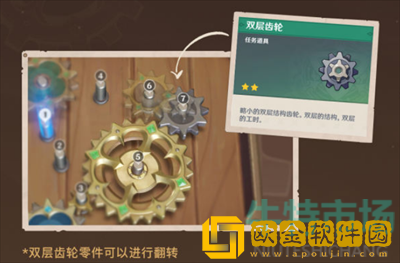 1、首先我们需要合理的安装不同的齿轮,将其放置在正确的位置,齿轮可以转动意味着修复成功;