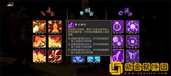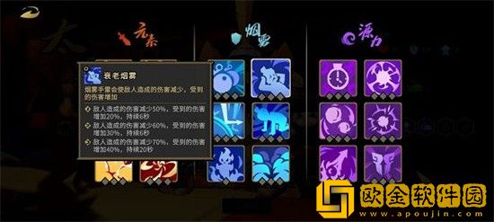 3.混子流顾名思义没有什么输出,推荐在组队并且对内有输出手玩,混子流金爵要求点满3级衰老烟雾,其余的可以优先选择源力球数量 控制时间。因为不需要输出所以武器没有太大要求,补充一下队友没有的元素就行。