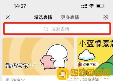 2、打开表情搜索后,点击表情搜索框下的更多表情。
