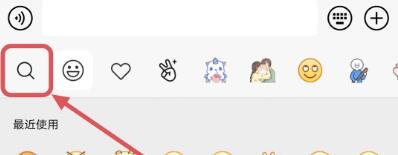 1、打开微信,随意点击进入一个对话框,点击表情图标最左侧的搜索按钮。