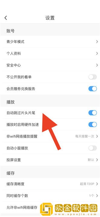 第三步:最后找到自动跳过片头片尾,开启右侧开关即可。