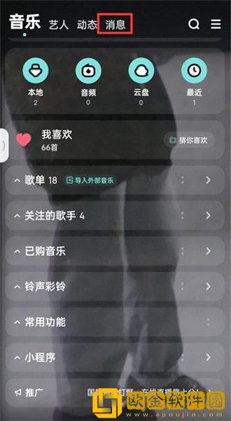 2.然后在我的页面中点击上方的【消息】;