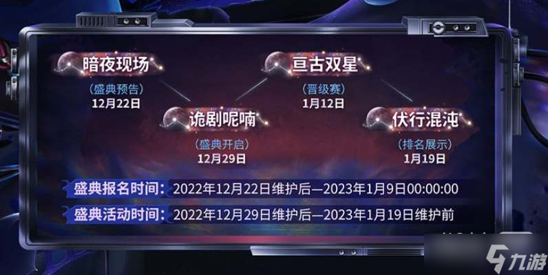1、第五人格COA6深渊的呼唤VI将于12月22至2023年1月19日期间开放。活动分为暗夜现场、诡剧呢喃、亘古双星、伏行混沌四个阶段,具体的时间安排如下图所示;
